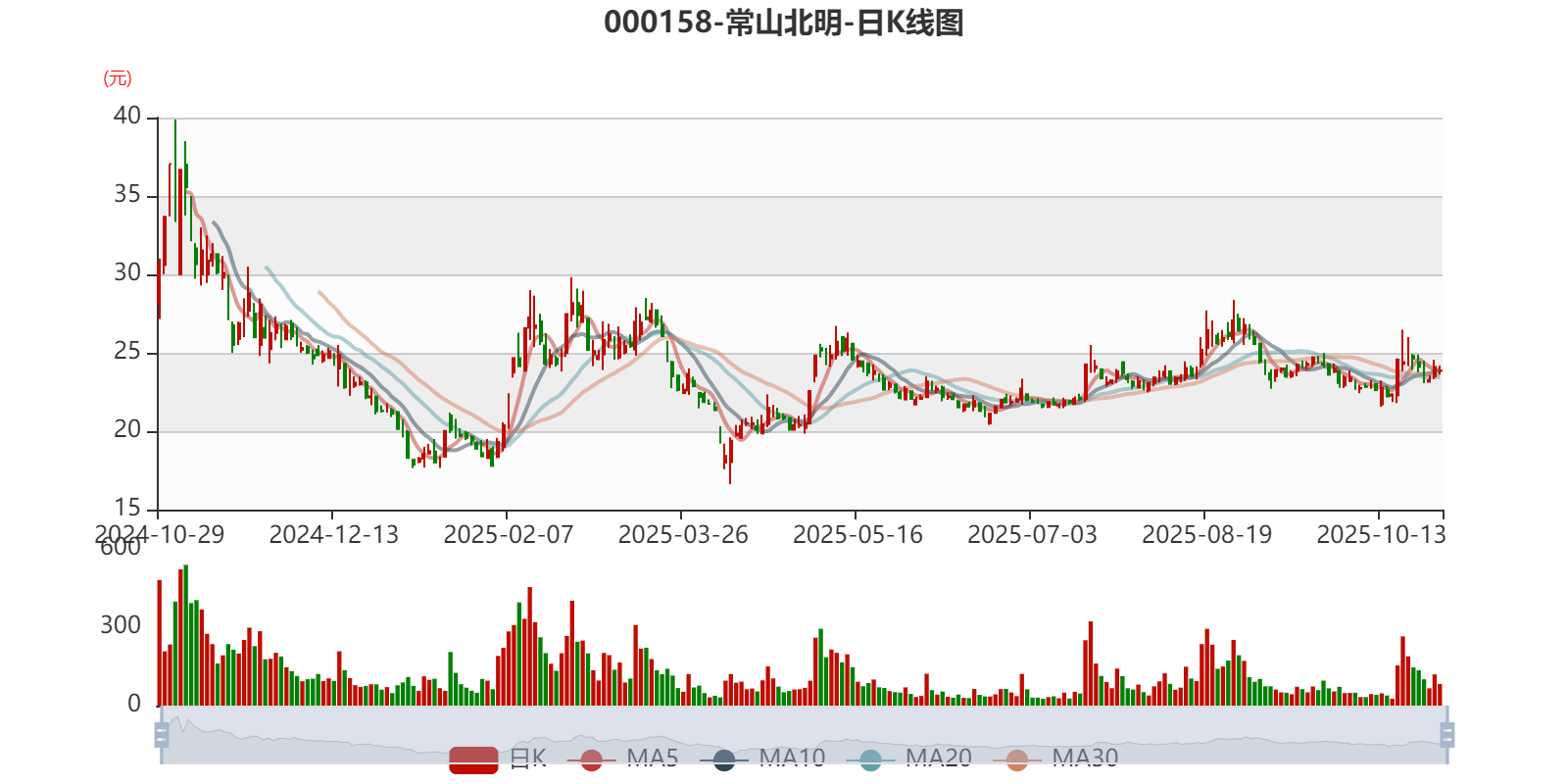 中证智能财讯常山北明(000158)10月29日披露2025年第三季度报告。前三季度公司实现营业总收入51.25亿元,同比增长3.61%;归母净利润亏损1.55亿元,上年同期亏损2.99亿元;扣非净利润亏损2.11亿元,上年同期亏损3.96亿元;经营活动产生的现金流量净额为-10.77亿元,上年同期为-14.51亿元;报告期内,常山北明基本每股收益为-0.0972元,加权平均净资产收益率为-2.93%。