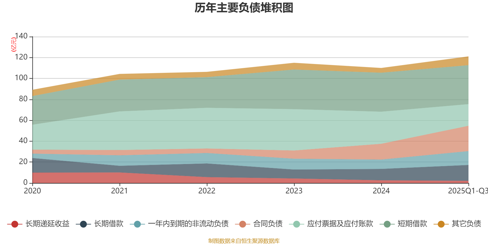 负债重大变化方面,截至2025年三季度末,公司应付票据及应付账款较上年末减少32.45%,占公司总资产比重下降6.76个百分点;合同负债较上年末增加60.75%,占公司总资产比重上升4.76个百分点;一年内到期的非流动负债较上年末增加48.04%,占公司总资产比重上升2.19个百分点;长期应付款合计较上年末增加1747.08%,占公司总资产比重上升2.16个百分点。