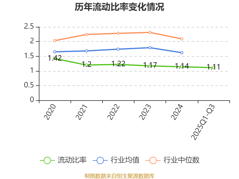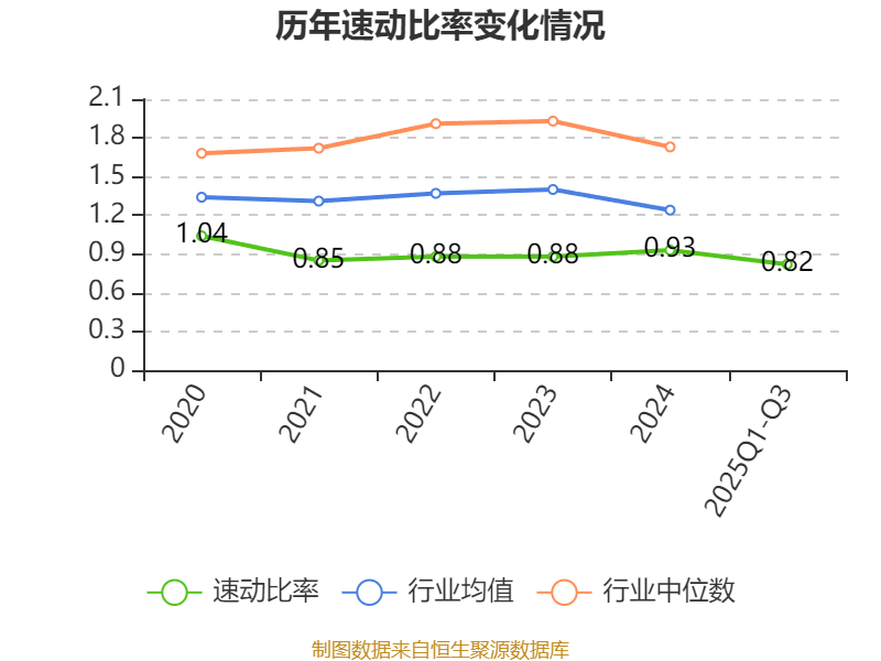 2025年前三季度,公司流动比率为1.11,速动比率为0.82。