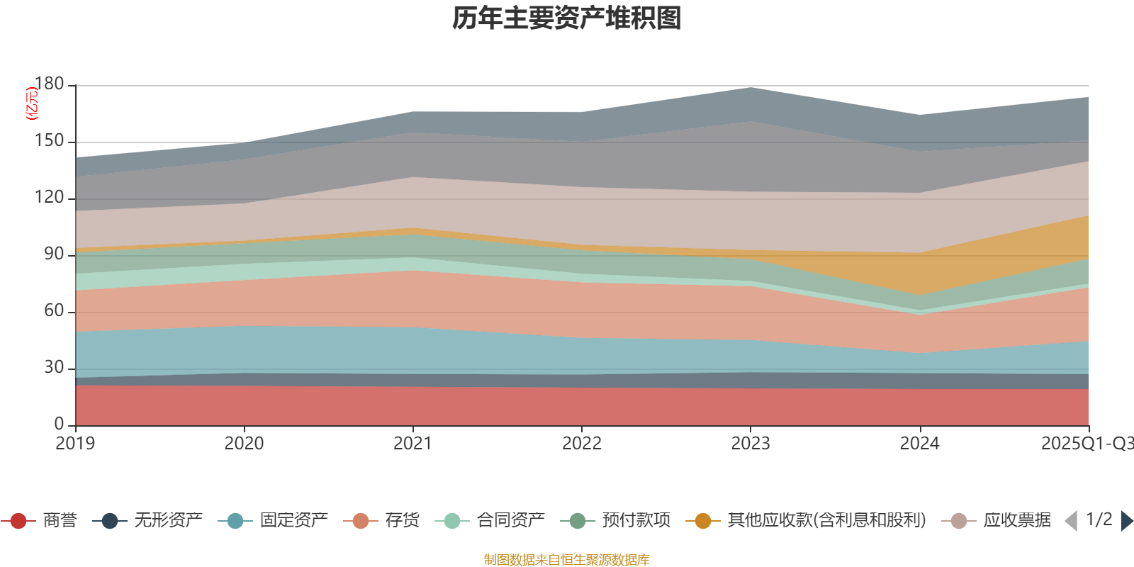 资产重大变化方面,截至2025年三季度末,公司货币资金较上年末减少48.8%,占公司总资产比重下降6.82个百分点;存货较上年末增加40.61%,占公司总资产比重上升4.06个百分点;固定资产较上年末增加65.84%,占公司总资产比重上升3.65个百分点;应收票据及应收账款较上年末减少9.66%,占公司总资产比重下降2.83个百分点。