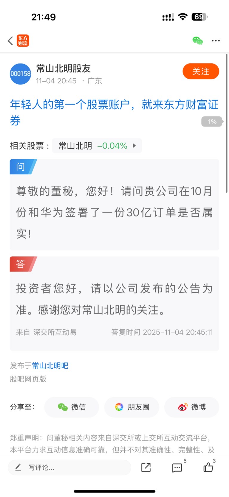 温馨提示: 1.根据《证券法》规定,禁止编造、传播虚假信息或者误导性信息,扰乱证券市场;2.用户在本社区发表的所有资料、言论等仅代表个人观点,与本网站立场无关,不对您构成任何投资建议。用户应基于自己的独立判断,自行决定证券投资并承担相应风险。《东方财富社区管理规定》