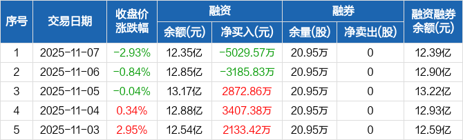 常山北明:融资净偿还5029.57万元,融资余额12.35亿元(11-07)