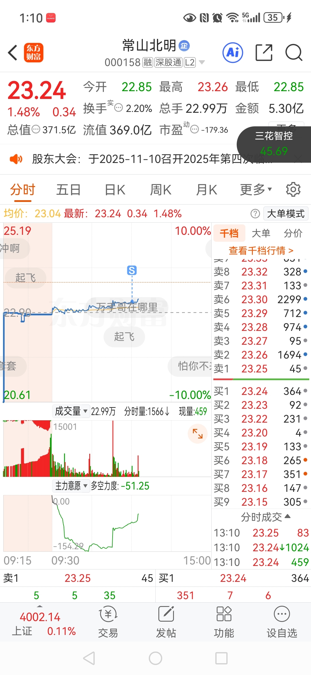 $常山北明(SZ000158)$ 完了,割肉了已经