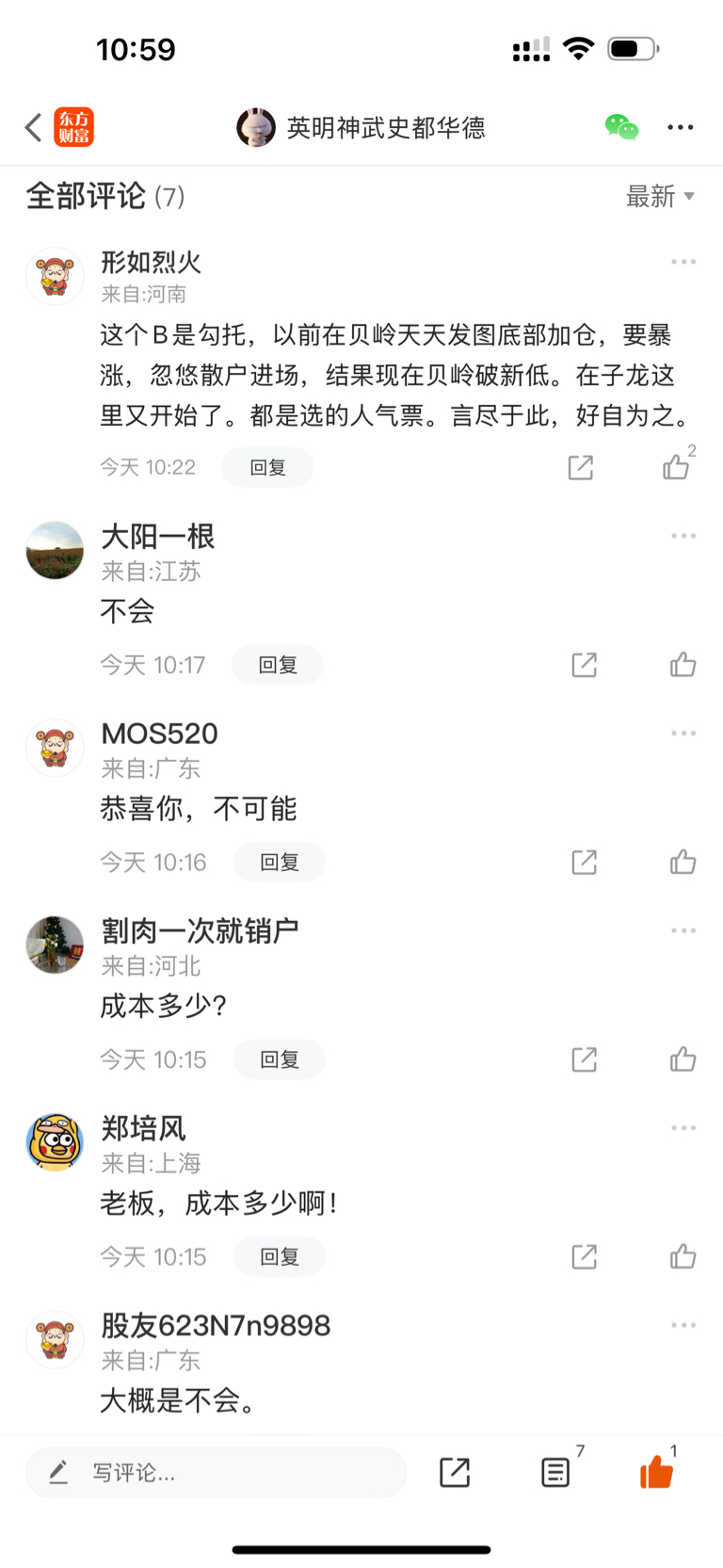 温馨提示: 1.根据《证券法》规定,禁止编造、传播虚假信息或者误导性信息,扰乱证券市场;2.用户在本社区发表的所有资料、言论等仅代表个人观点,与本网站立场无关,不对您构成任何投资建议。用户应基于自己的独立判断,自行决定证券投资并承担相应风险。《东方财富社区管理规定》