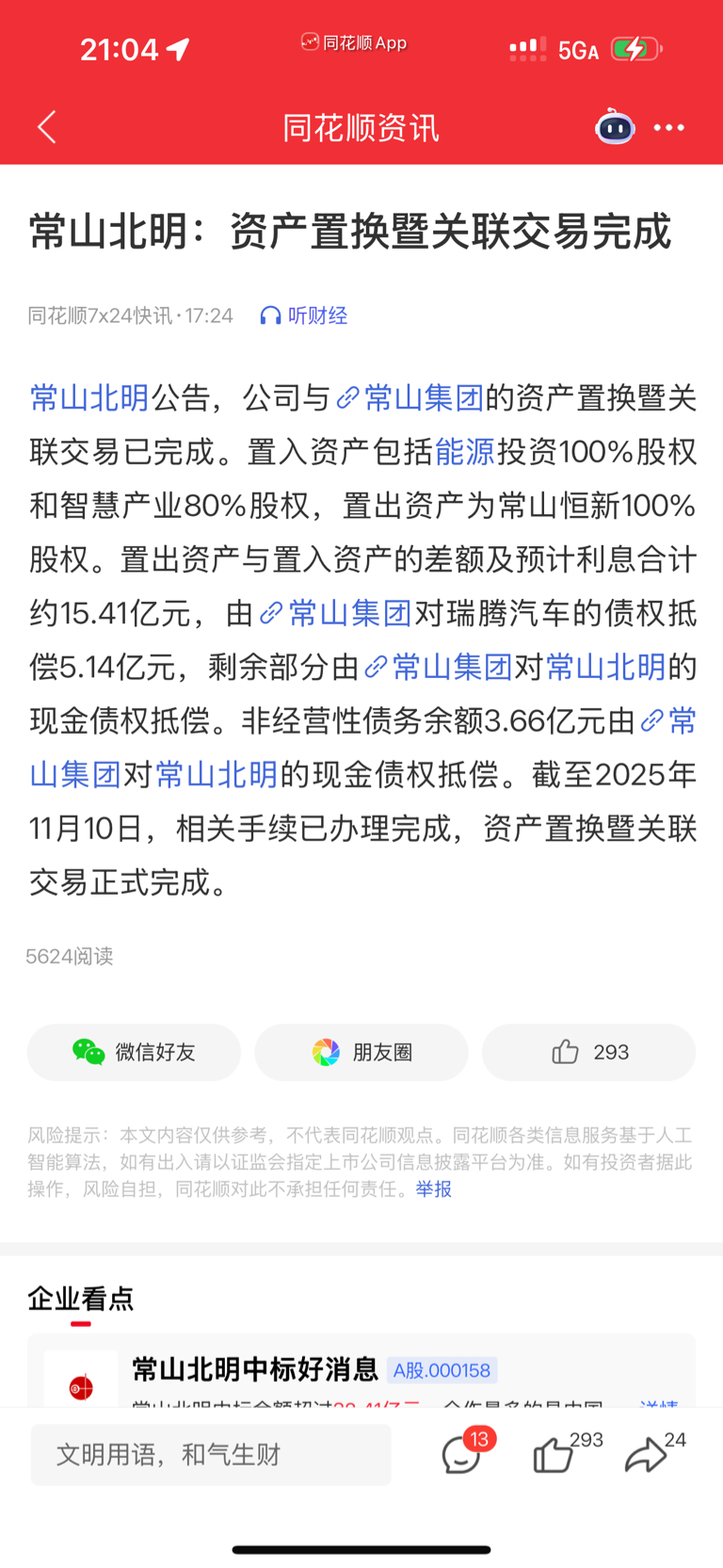 $常山北明(SZ000158)$