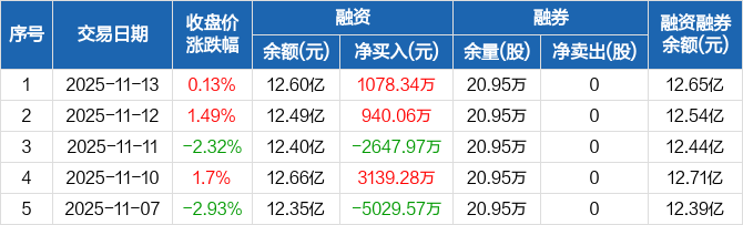 常山北明:融资净买入1078.34万元,融资余额12.6亿元(11-13)