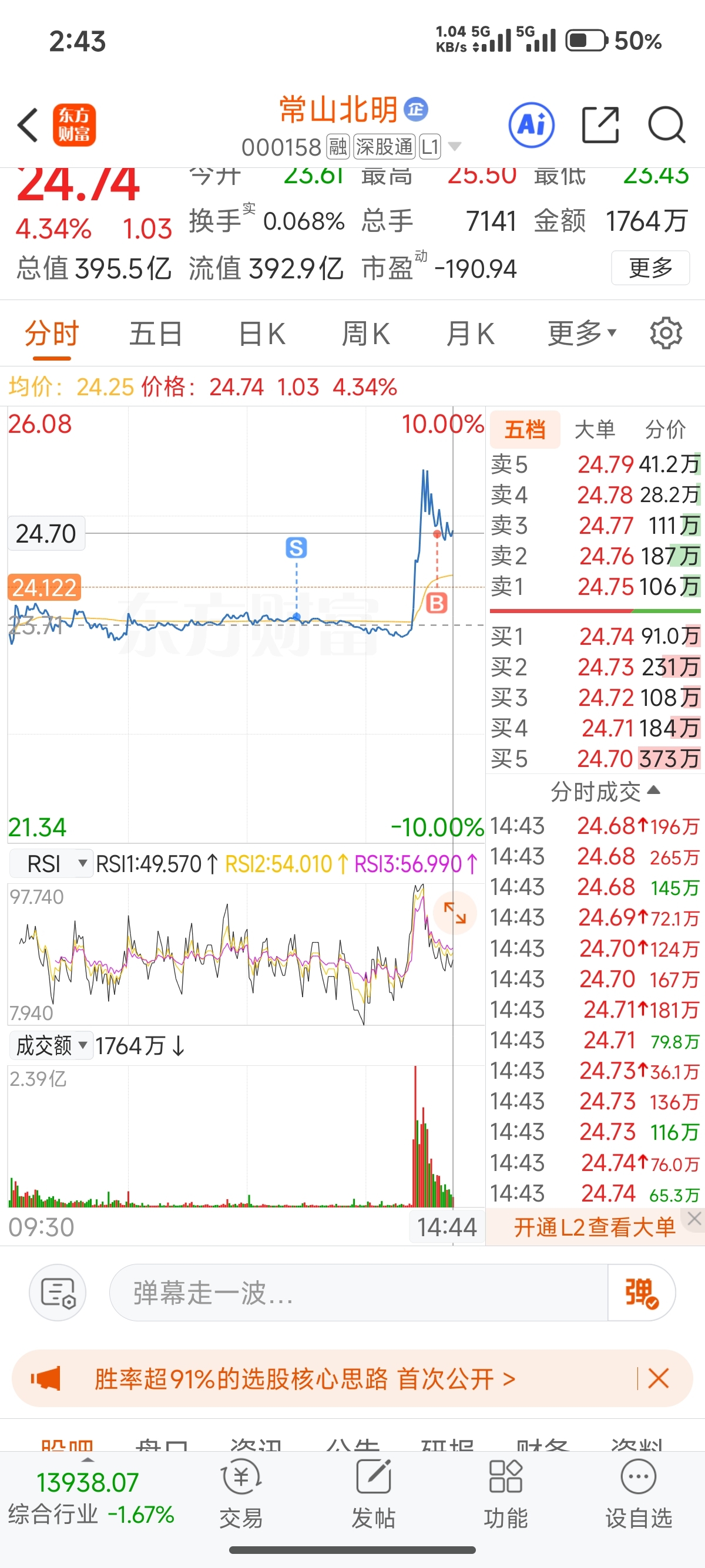 $常山北明(SZ000158)$ SB战法重现江湖#复盘记录# #炒股日记#