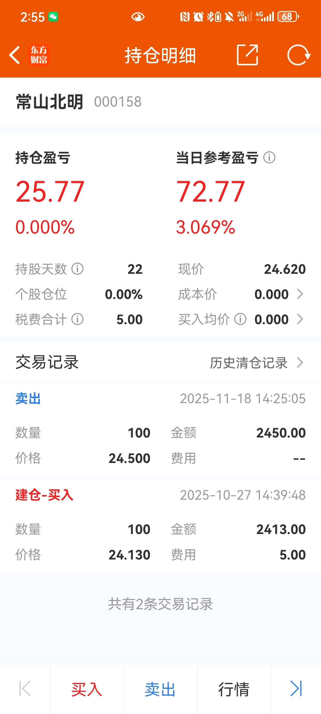 $常山北明(SZ000158)$ 每天设个24.5,终于让我成功的出来喝杯奶茶了