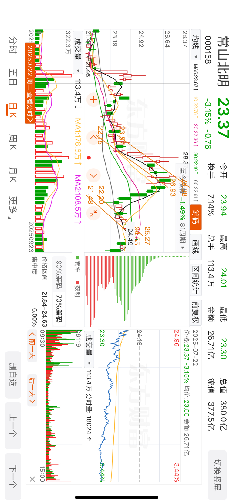 尾盘留了底仓,明天可能会杀到23左右,再接回来,跟7.22走势很像