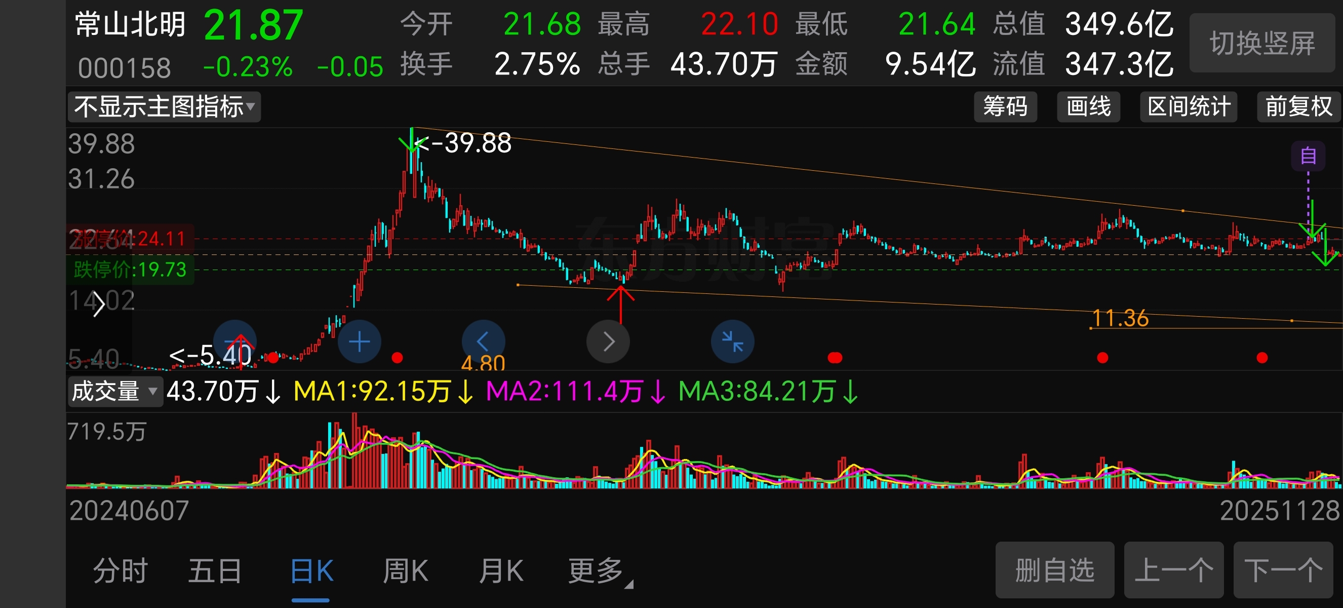 有人说上方空间大。空间在哪里?上方不突破。他就是个下降通道。上方8个头怎么搞?需要多大的资金让你解套。不把散户消化完它啥呀?