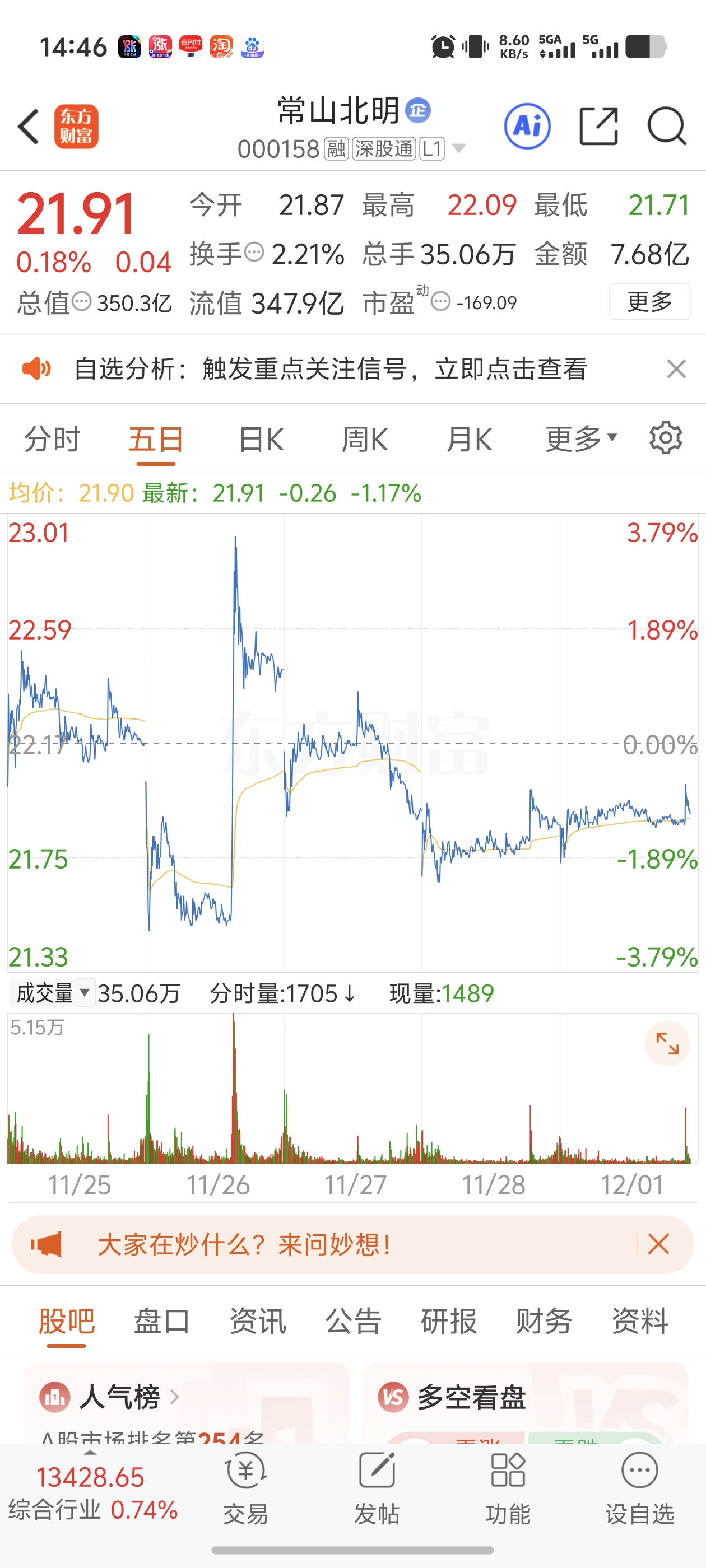 $常山北明(SZ000158)$