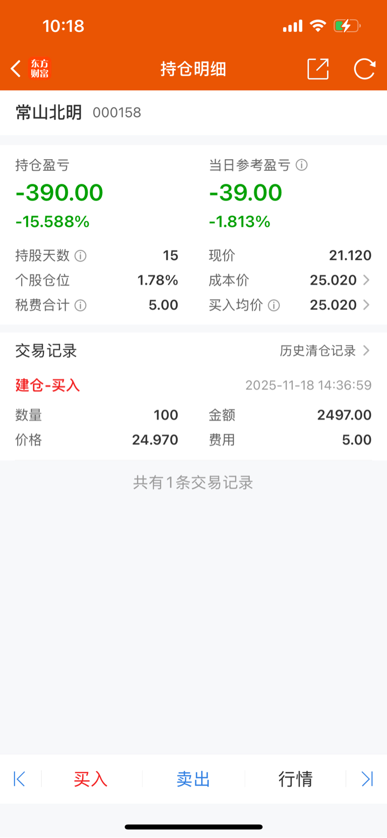 $常山北明(SZ000158)$ 最多再扛15个点,应该会反弹