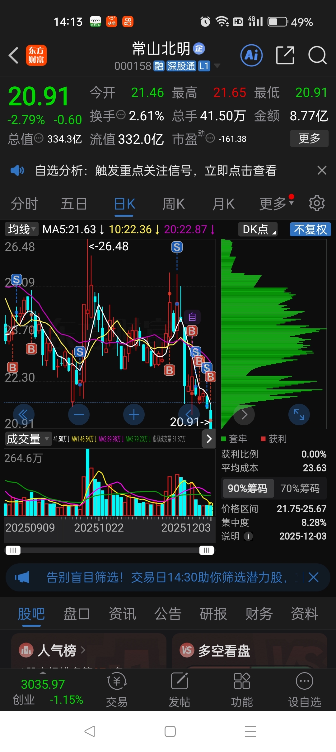 $常山北明(SZ000158)$ 竟全体套牢,无一例外