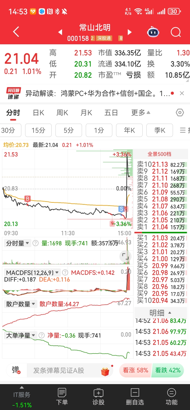 $常山北明(SZ000158)$ 主力就盯着我这五十几手是吧