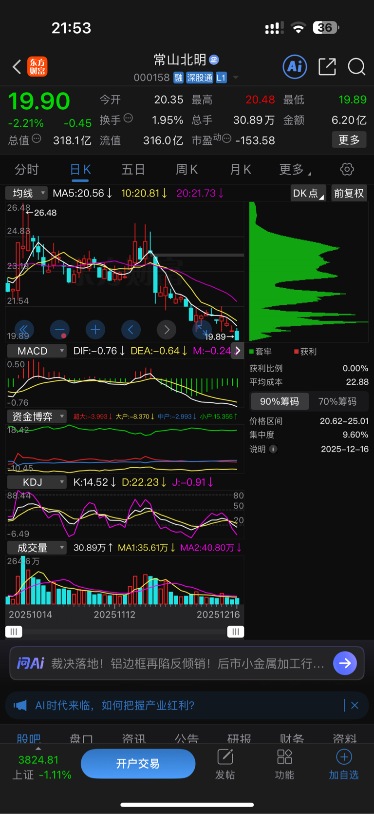 $常山北明(SZ000158)$ 这筹码峰,服了曾经的辉煌一去不复返