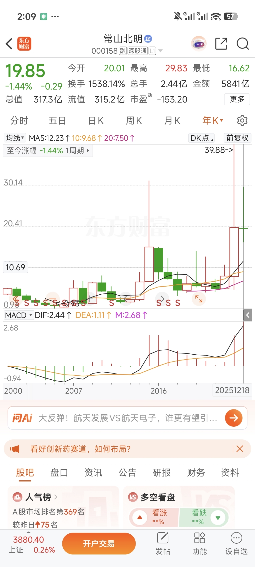 $常山北明(SZ000158)$ 年涨幅-1.44,里面的韭菜赚到钱了么