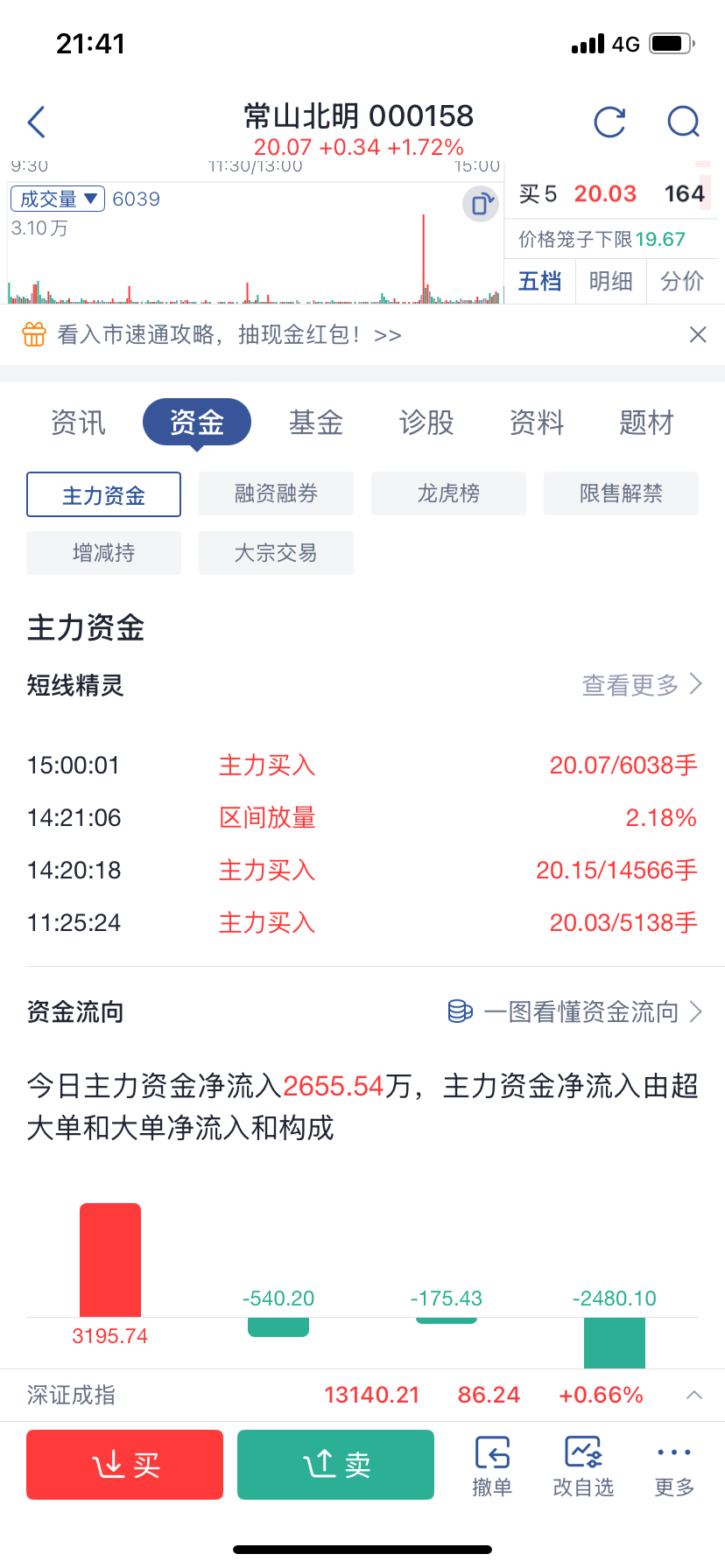 $常山北明(SZ000158)$ 主力下午进了2万手,那是200万股。还在说15块,是不是没看到提示