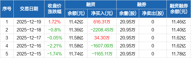 常山北明:融资净买入616.31万元,融资余额11.42亿元(12-19)