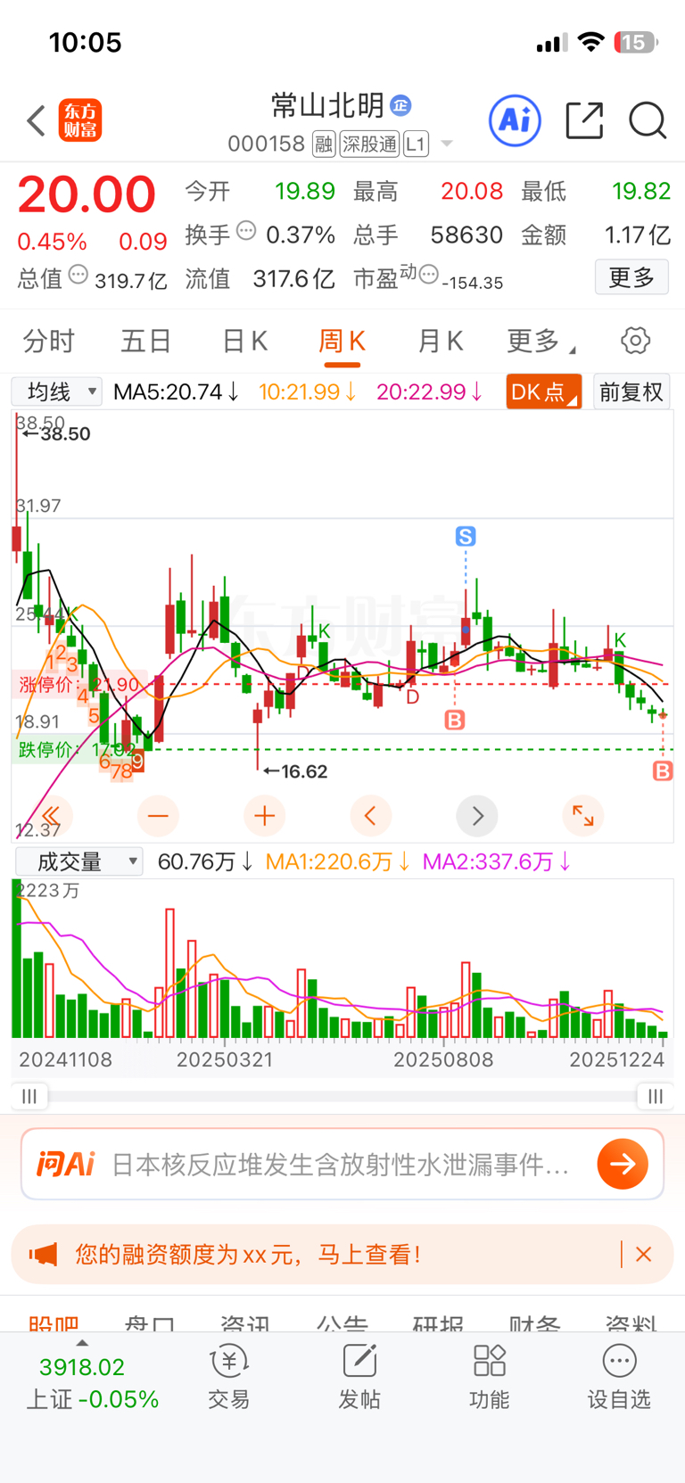 $常山北明(SZ000158)$ 时隔4个月,我又来了