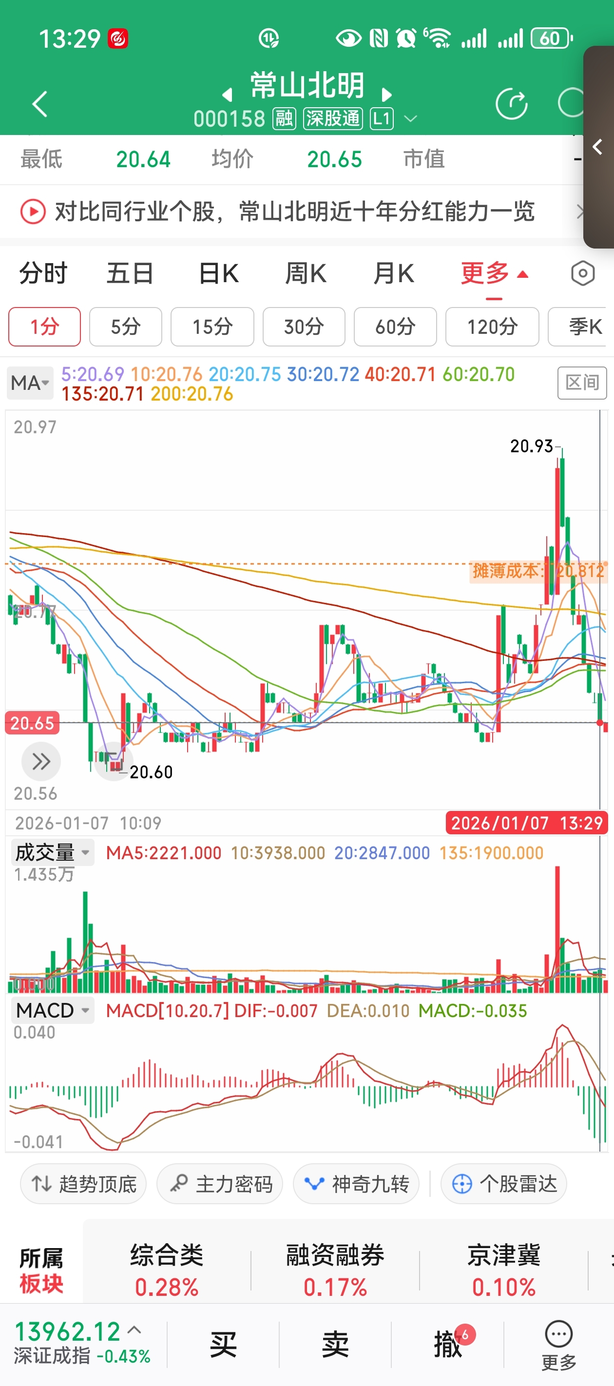 $常山北明(SZ000158)$ 每个低点就差1-2分