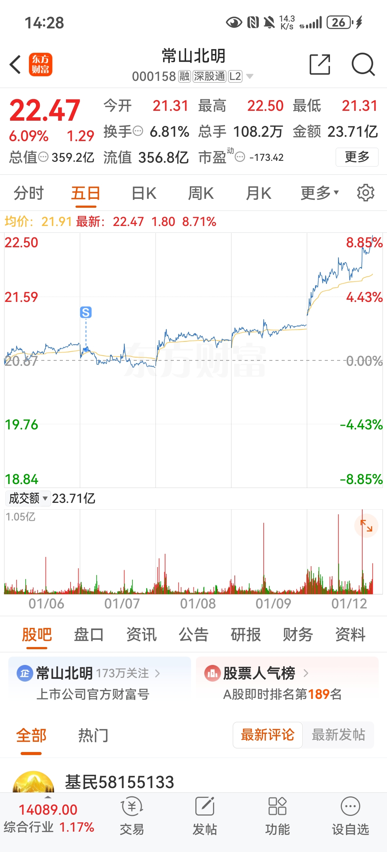 $常山北明(SZ000158)$ 兄弟们感谢我吧,熬了三个月熬不住卖了开始大涨了。