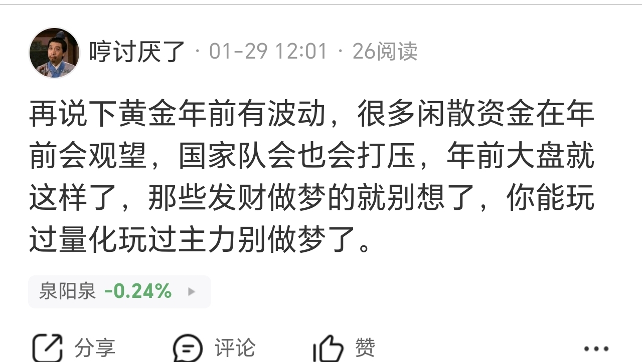 温馨提示: 1.根据《证券法》规定,禁止编造、传播虚假信息或者误导性信息,扰乱证券市场;2.用户在本社区发表的所有资料、言论等仅代表个人观点,与本网站立场无关,不对您构成任何投资建议。用户应基于自己的独立判断,自行决定证券投资并承担相应风险。《东方财富社区管理规定》