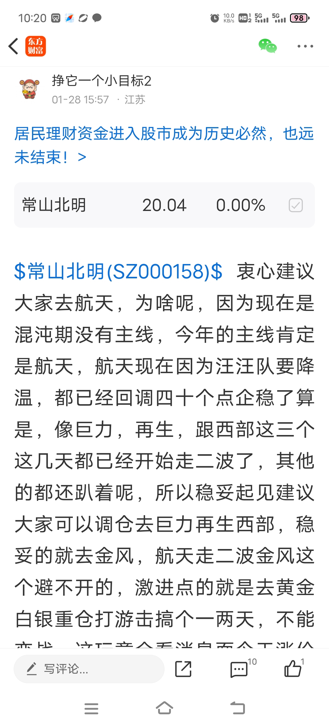 $常山北明(SZ000158)$ 西部,再升,巨力,当时说的现在哪个没有涨十几个点,就算买了被套一两天也会盈利出来,总比在这一直趴着强多了