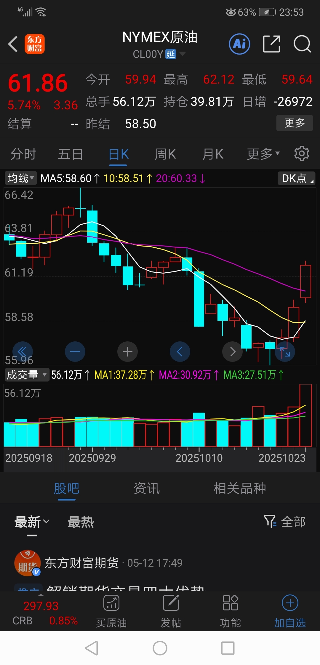 $国际实业(SZ000159)$ 国际原油近日连续大涨(截图交易中)