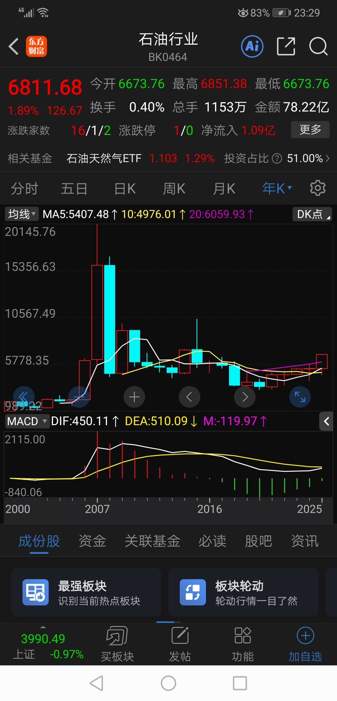 石油板块年线金叉、日线连阳沿5日均线攀升
