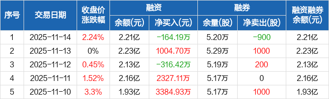 国际实业:融资净偿还164.19万元,融资余额2.21亿元(11-14)
