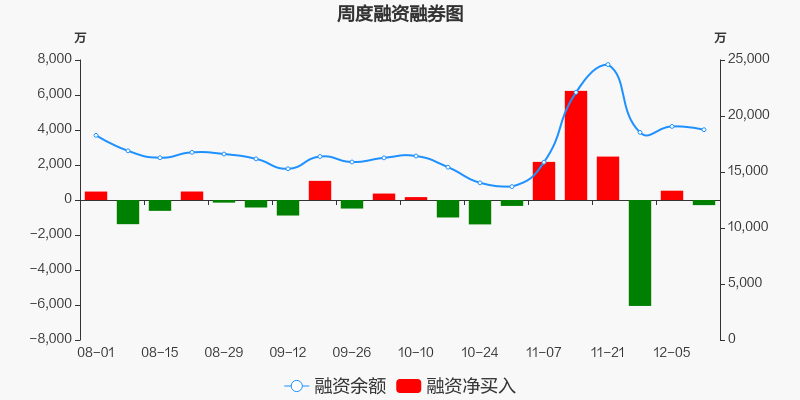 国际实业本周(2025/12/08-2025/12/12)累计跌幅达6.63%,截至12月12日最新股价报收5.49元。从增量上来看,12月8日至12月11日融资买入交易规模2078.12万元,融资偿还规模2370.67万元,期内融资净偿还292.55万元。从存量上来看,截止12月14日,国际实业融资融券余额1.88亿元,其中融资余额规模1.88亿元,融券余额规模29.41万元。