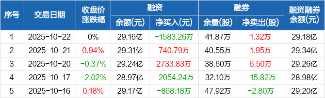 申万宏源:融资净偿还1583.26万元,融资余额29.16亿元(10-22)