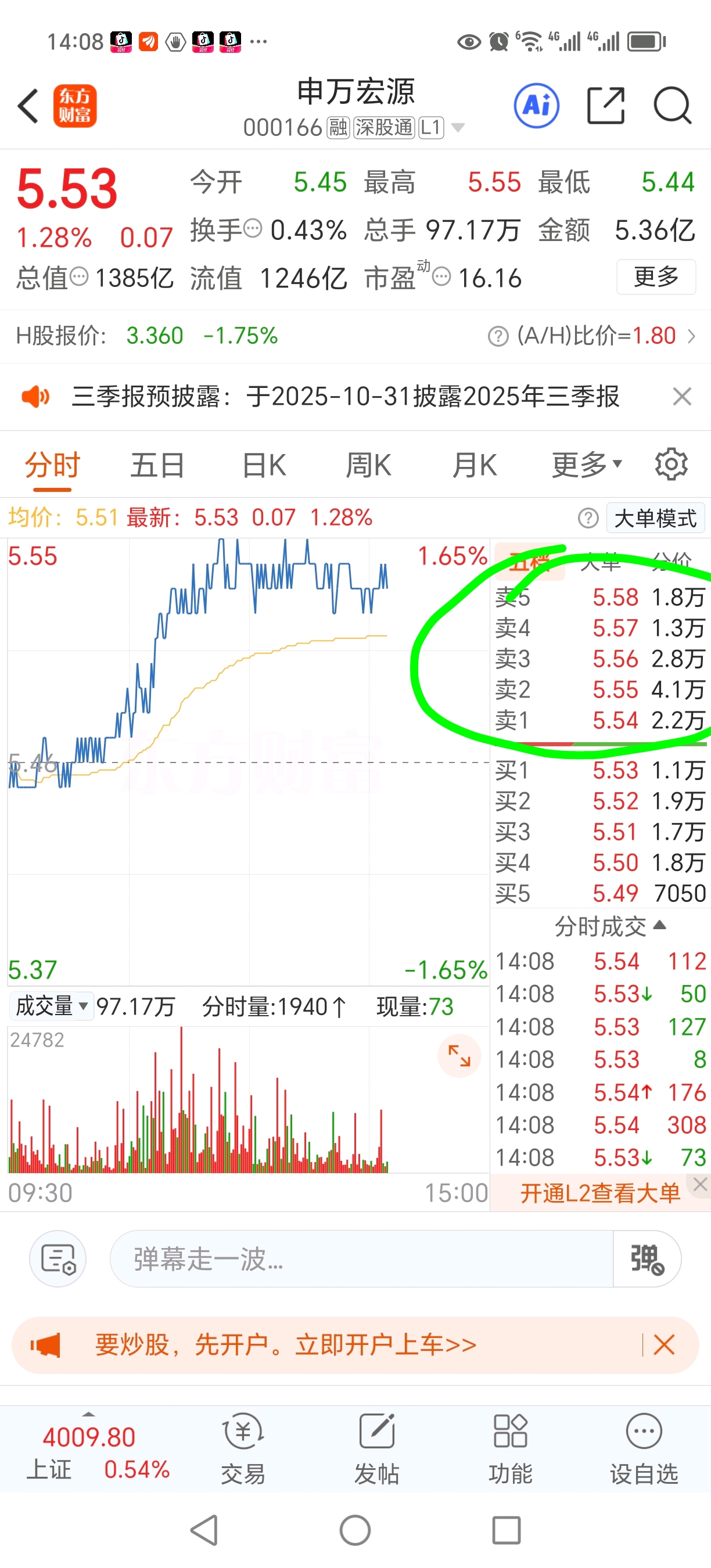 $申万宏源(SZ000166)$ 盘口一堆卖单压盘