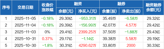 申万宏源:融资净偿还953.31万元,融资余额29.3亿元(11-05)