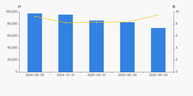 截至2025年9月30日,公司最新总股本为66.11亿股,其中流通股本为66.09亿股。户均持有流通股数量由上期的7.97万股上升至9.01万股,户均流通市值85.69万元。