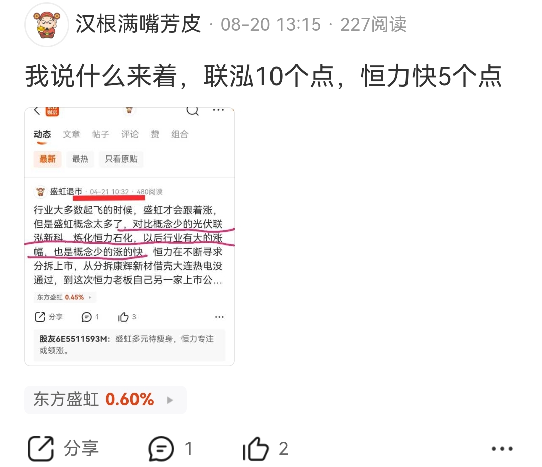 温馨提示: 1.根据《证券法》规定,禁止编造、传播虚假信息或者误导性信息,扰乱证券市场;2.用户在本社区发表的所有资料、言论等仅代表个人观点,与本网站立场无关,不对您构成任何投资建议。用户应基于自己的独立判断,自行决定证券投资并承担相应风险。《东方财富社区管理规定》