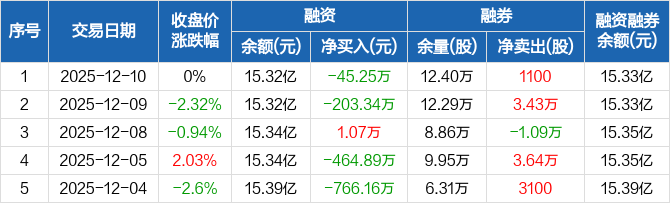东方盛虹:融资净偿还45.25万元,融资余额15.32亿元(12-10)