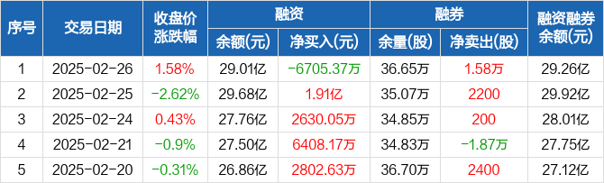 美的集团:融资净偿还6705.37万元,融资余额29.01亿元(02-26)