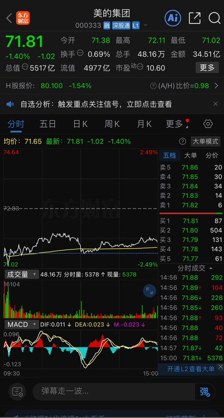 $美的集团(SZ000333)$ 老登股上涨乏力啊,都跑不赢板块指数,更不说大盘指数哦,我35手拿这么久都没挣到钱。本来挣2个点,今天又跌进去了。白瞎了。只能拿到月底看三季度业绩了。
