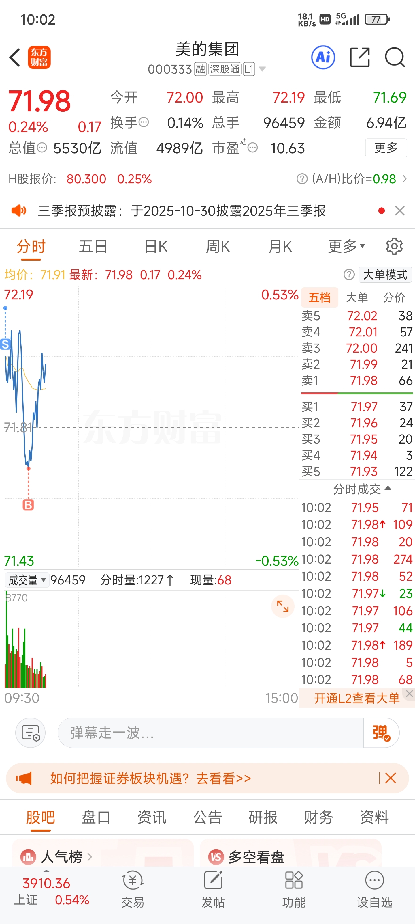 $美的集团(SZ000333)$ 每日一T,量化策略从趋势改为反转