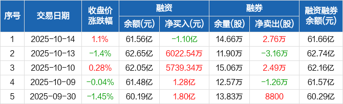美的集团:融资净偿还1.1亿元,融资余额61.56亿元(10-14)