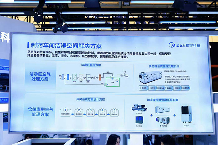 “药企生产的能源成本非常高,设备更新周期长、老旧设备能效低下、维护成本高,这些都是行业的共性难题。”尹杰表示:“针对这些痛点,美的楼宇科技近年来在医药领域持续深耕,推出了以‘智能控制+节能系统’为核心的全场景解决方案,覆盖制药企业从生产、仓储到物流的各个环节,助力行业实现节能降耗与高质量生产。美的自主研发的美控系统和iBUILDING智能平台能够在满足GMP和FDA标准的前提下,通过数据分析和云计算的技术支持助力药企实现智能化生产和管理,提高生产效率和药品的产品质量。”