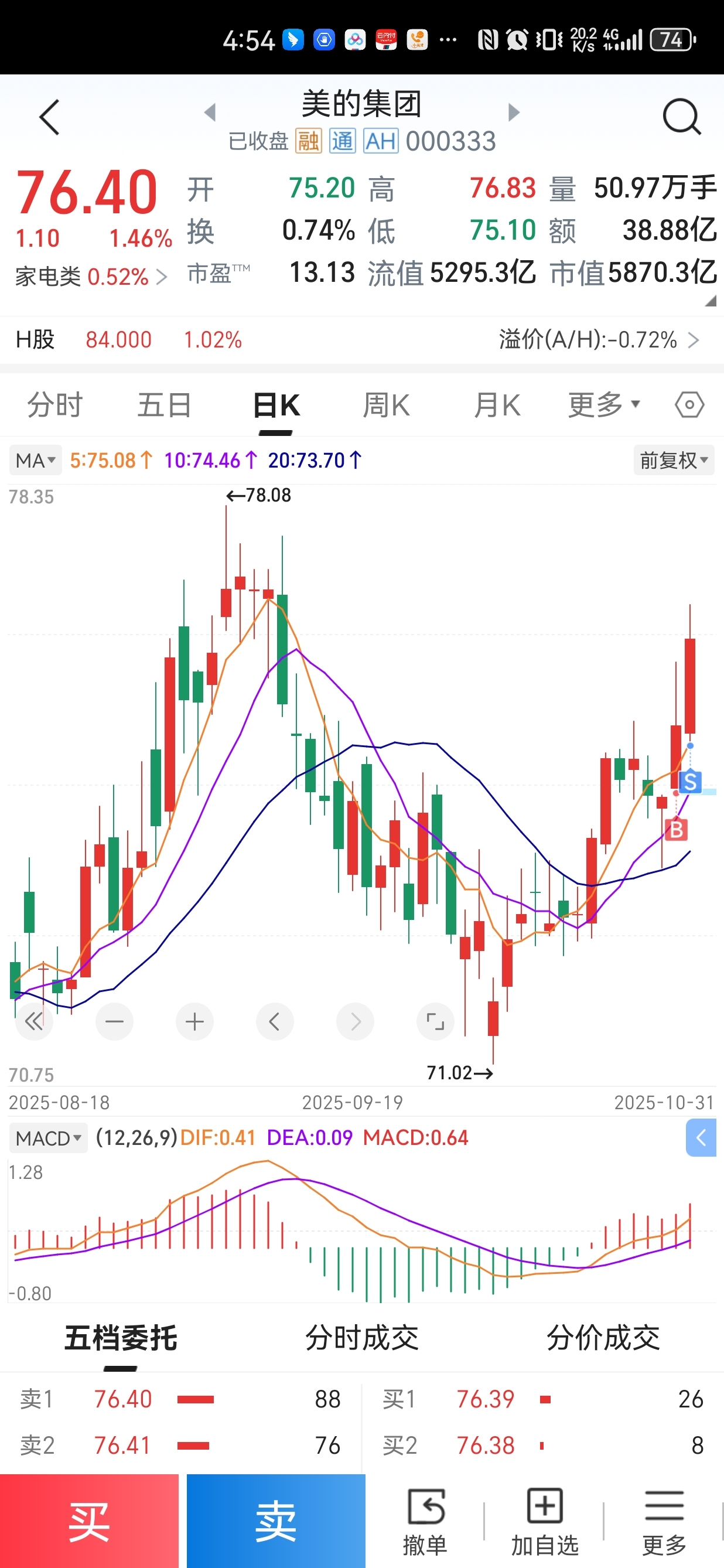 $美的集团(SZ000333)$ 兄弟们我割了,周一大涨吧