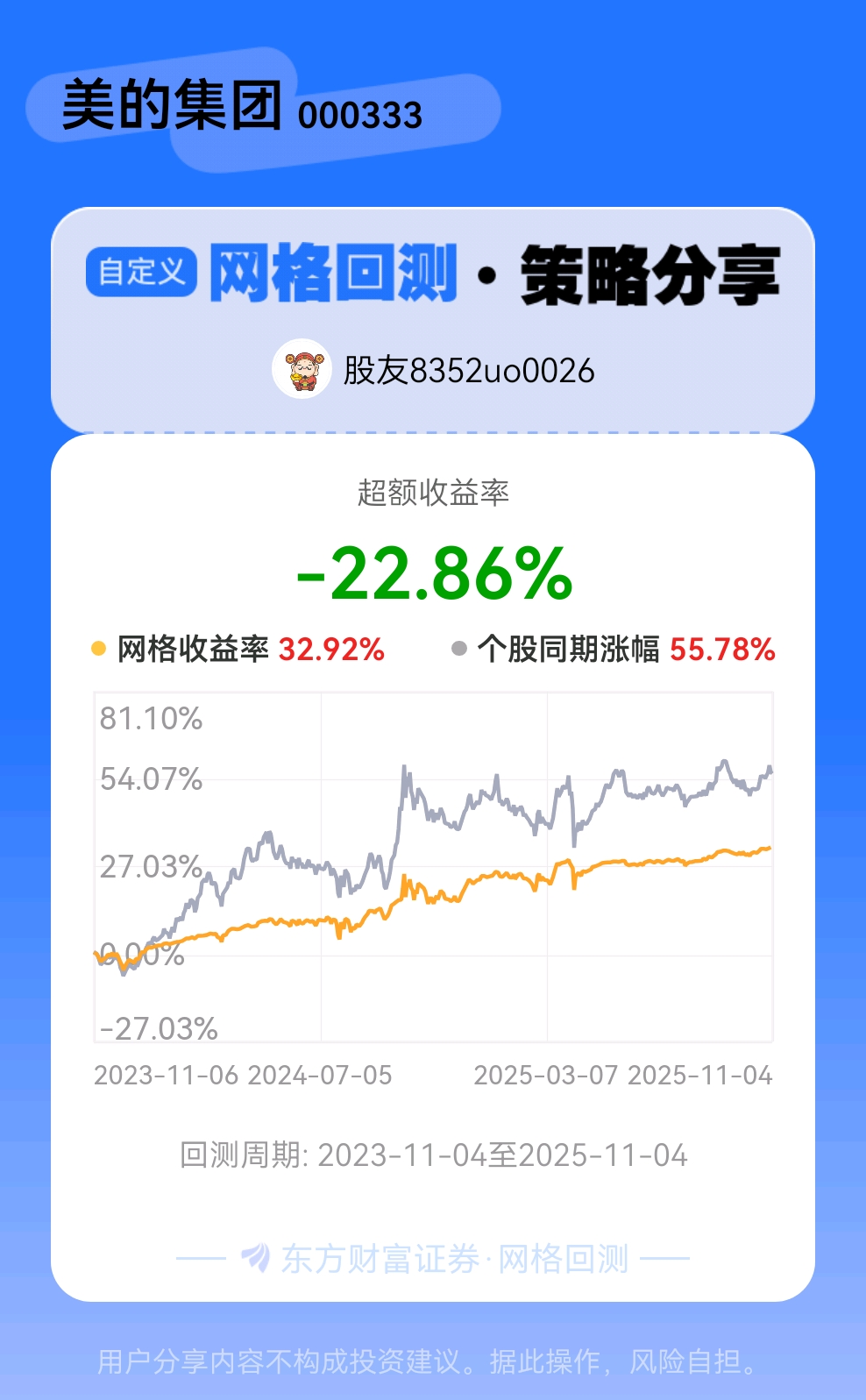 #条件单交流# #网格交易晒单#我使用网格交易回测了最关心的个股,朋友们走过路过看看我的收益~$美的集团(SZ000333)$