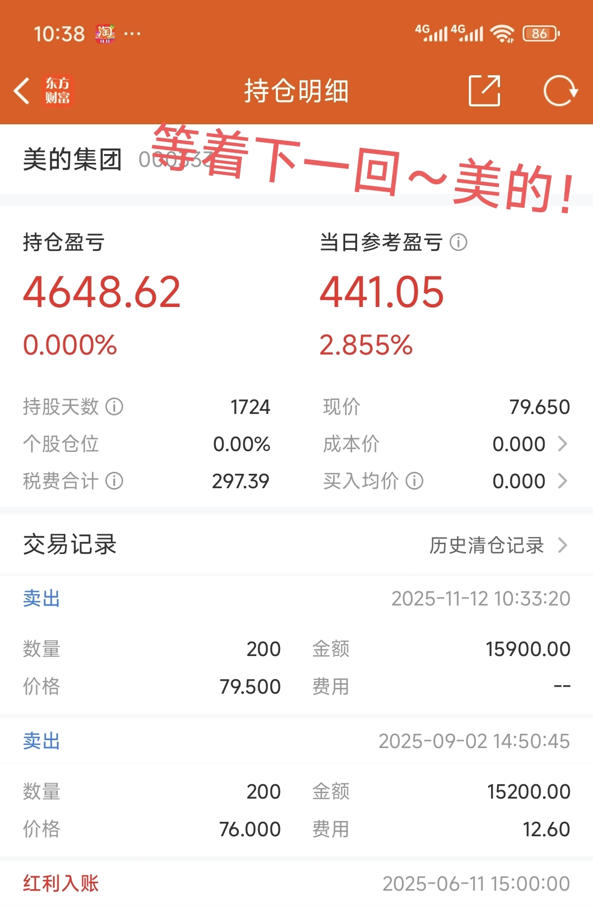 收益4648落袋!