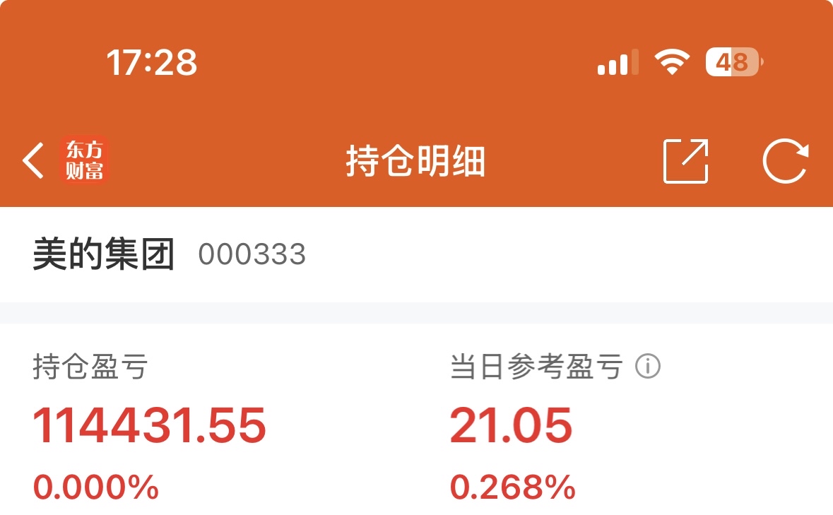 $美的集团(SZ000333)$ 兄弟们,今天最后100股也清了,上周80那天卖了大部分。玩了几年股票第一个盈利10w+,卖出去补东方财富的亏空