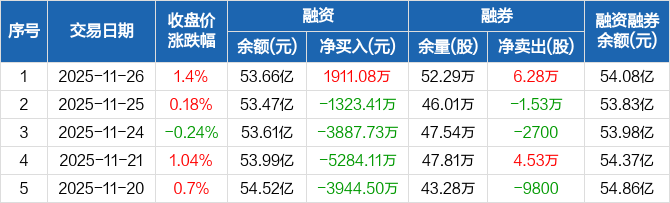 美的集团:融资净买入1911.08万元,融资余额53.66亿元(11-26)