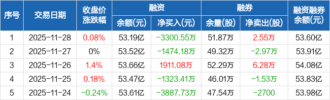美的集团:融资净偿还3300.55万元,融资余额53.19亿元(11-28)