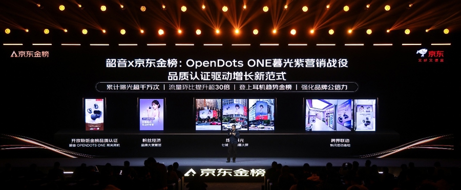 此外,京东金榜还为品牌搭建了传递品牌价值的舞台。今年9月,韶音联合京东金榜推出OpenDots ONE暮光紫配色耳夹式耳机新品,该产品凭借低频聚合技术及杜比音效支持,获得“京东金榜音质认证”,并于11月登上京东耳机趋势金榜,带动站内外商品流量环比提升超30倍。