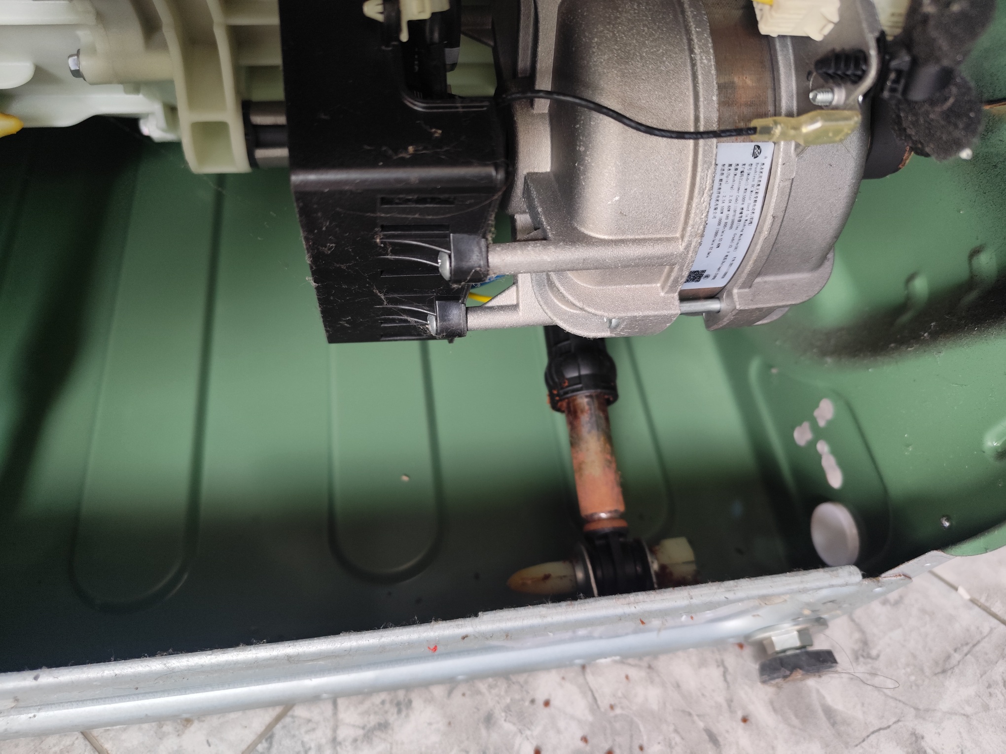 美的洗衣机质量太差,刚过三年保修期就爆振,没发洗。倒下来看,减震器已经锈的不成样